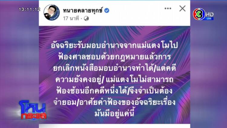 หนึ่งถอนหนังสือที่มอบหมายพี่อัจที่เป็นผู้รับมอบอำนาจ อันนี้ถอนได้ แต่ถอนคดีที่พี่อัจไปร้องศาล ยืนยันว่าไม่ได้ ทนายเดชาก็บอกว่าไม่ได้?