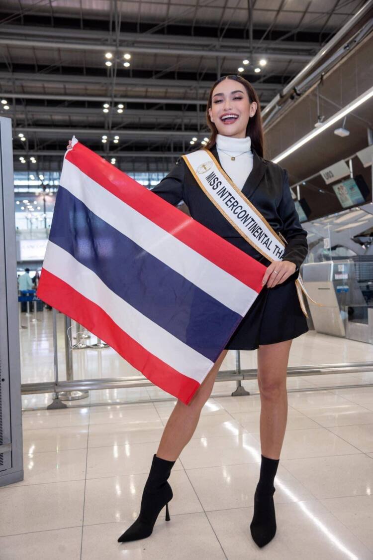 โดย ณวัฒน์ อิสรไกรศีล ประธานกองประกวดมิสแกรนด์ไทยแลนด์ รวมถึงแฟนๆ ที่เดินทางมาร่วมส่งที่สนามบิน บรรยากาศเป็นไปอย่างอบอุ่น สำหรับรอบตัดสิน ประกวด Miss Intercontinental ครั้งที่ 50 จะมีขึ้นวันที่ 14 ตุลาคมนี้