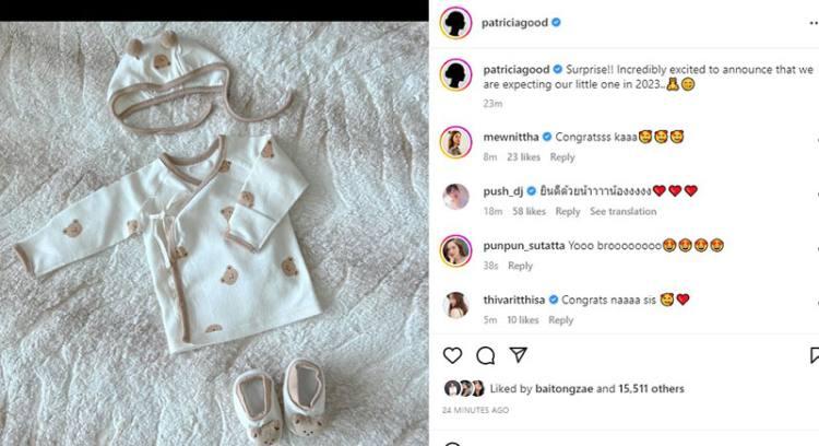 หลังจากทำแฟนๆ ลุ้นกันหนักมาก ว่า “แพทริเซีย กู๊ด” จะมีข่าวดีหรือเปล่า หลังเข้าพิธีวิวาห์ “โน้ต วิเศษ รังษ์สิงห์พิพัฒน์” แล้วดูเปล่งปลั่ง มีน้ำมีนวล ล่าสุดวันนี้ (15 ก.พ.) สาวแพทริเซียก็เผยข่าวดีผ่านอินสตาแกรม ยืนยันว่าตัวเองท้องแล้ว “Surprise!! Incredibly excited to announce that we are expecting our little one in 2023..🧸🤭” ท่ามกลางความยินดีของคนในวงการบันเทิงและแฟนคลับ