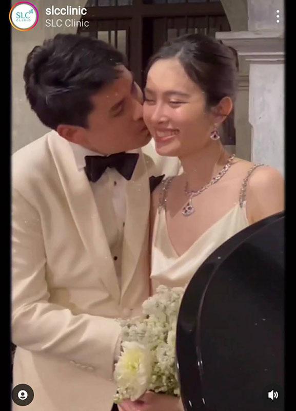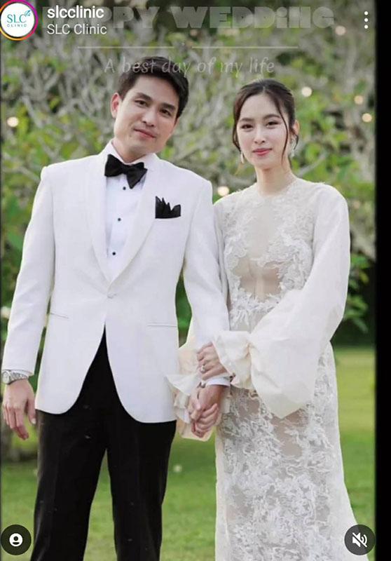 ควงแขนฉลองวิวาห์ชื่นมื่น สำหรับคู่ “ปอย ตรีชฎา หงษ์หยก” และ “โอ๊ค บรรลุ หงษ์หยก” หลังเข้าพิธีวิวาห์ตามประเพณีจังหวัดภูเก็ตไปเมื่อวันที่ 1 มี.ค. 66
