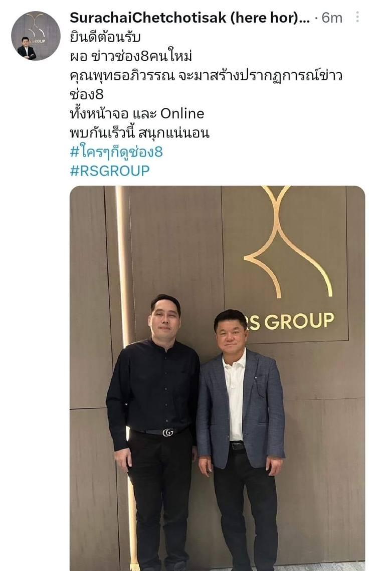 “ยินดีต้อนรับ ผอ.ข่าวช่อง 8 คนใหม่ คุณพุทธ อภิวรรณ จะมาสร้างปรากฎการณ์ข่าวช่อง 8 ทั้งหน้าจอและออนไลน์ พบกันเร็วๆ นี้ สนุกแน่นอน #ใครๆก็ดูช่อง8 #RSGROUP”