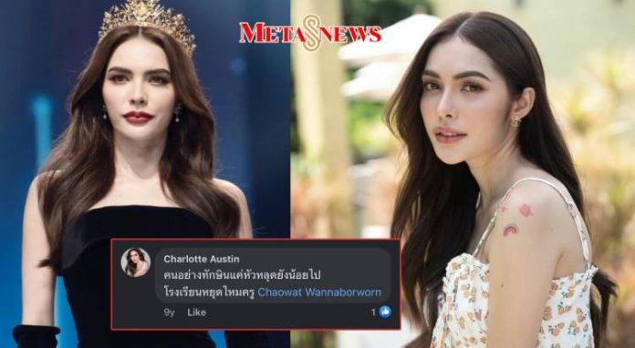 เป็นนางงามฝั่งประชาธิปไตย ที่กำลังงานเข้า สำหรับ “ชาล็อต ออสติน” เหตุถุกขุดโพสต์เก่าเมื่อ 9 ปีก่อนกับคอมเมนต์เชิงข่มขู่ “ทักษิณ ชินวัตร” อดีตนายกรัฐมนตรี โดยมีการแชร์ข้อความดังกล่าวสนั่นโลกออนไลน์ เกิดกระแสวิพากษ์วิจารณ์ไปทั่ว ล่าสุด ชาล็อต ได้ทวิตถึงเรื่องนี้ โดยน้อมรับความผิดพลาดในอดีต รวมทั้งได้ขอโทษทักษิณ และครอบครัว