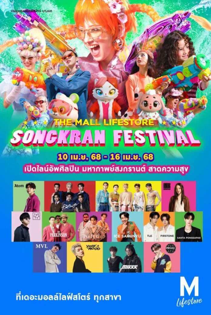 สงกรานต์ปีนี้ เดอะมอลล์ไลฟ์สโตร์ จัดใหญ่ สาดความมันส์ตลอด 7 วันเต็ม พาเหรดทัพศิลปินชั้นนำ สาดความสุข มินิคอนเสิร์ต กิจกรรมสนุกสำหรับครอบครัว ในงาน “THE MALL LIFESTORE SONGKRAN FESTIVAL” มหากาพย์สงกรานต์ สาดความสุข สนุกทั้งครอบครัว ตั้งแต่วันที่ 10 -16 เมษายน 2568 ที่เดอะมอลล์ไลฟ์สโตร์ ท่าพระ, งามวงศ์วาน, บางแค และบางกะปิ ตั้งแต่เวลา 16.00 น.เป็นต้นไป ชมฟรี! ไม่มีค่าใช้จ่าย