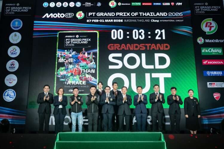 รัฐบาลไทย นำโดย การกีฬาแห่งประเทศไทย กระทรวงการท่องเที่ยวและกีฬา แถลงข่าวความพร้อมการเป็นเจ้าภาพจัดการแข่งขัน “โมโตจีพี” สนามประเทศไทย ประจำปี 2569 ซึ่งได้รับเกียรติสูงสุด ขึ้นแท่นสนามเปิดฤดูกาล เป็นปีที่ 2 ติดต่อกัน ตอกย้ำก้าวสำคัญสู่ปีที่ 7 ที่แข็งแกร่งของไทยบนแผนที่มอเตอร์สปอร์ตโลก พร้อมเดินหน้า สานต่อความสำเร็จ ดันไทยสู่ “ฮับมอเตอร์สปอร์ตภูมิภาค” และสร้างต้นแบบเมืองกีฬาอาเซียน จุดพลุคอนเซ็ปต์ ‘More Than a Race’ จัดใหญ่-สนุกขึ้น ตั้งเป้าเป็นสนามแข่งที่ดีที่สุดและน่าจดจำที่สุดในปฏิทิน MotoGP ลุ้นสร้างสถิติใหม่ผู้ชมสูงสุดทำลายสถิติเดิม พร้อมเปิดจำหน่ายบัตรวันแรก กระแสตอบรับดีเยี่ยม ที่นั่งแกรนด์สแตนด์ Sold Out ด้วยเวลา 3.21 นาที