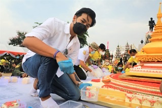 สำหรับบรรยากาศภายในงานคับคั่งไปด้วยบุคคลสำคัญ อาทิ นางรัตนา สมสกุลรุ่งเรือง ประธานมูลนิธิร่วมกตัญญู, นางเตือนใจ เตชะรัตนประเสริฐ จากสหมงคลฟิล์ม, คุณพรพิมล มั่นฤทัย ผู้บริหารค่ายโคลีเซี่ยม ฟิล์ม ซึ่งได้นำนักแสดงมาร่วมพิธีมากมาย เช่น ริช-วิชญพงศ์ เอี่ยมสะอาด, แก้ม-ญาณิศา ธีรธร, อลิซ-ธนัชศลักษณ์ ฮัดสัน, ส้ม-ชมพูนุช พึ่งพล, วิรสุดา จงจอหอ และทีมงานผู้กำกับละครชื่อดัง ทองก้อน ศรีทับทิม และจรัญ วงศ์สัจจะ โปรดิวเซอร์คนดัง ร่วมด้วยนักแสดงจากยุ้งข้าว เรคคอร์ด วงศธร สมศรี, เขมจิรา โพธิ์ศรี, ชลพิพรรธน์ ชูแสง, จิตรเลขา พูลสวัสดิ์ รวมถึง ศิลปินนักร้องบ่าววี-เรืออากาศตรี วีรยุทธิ์ นานช้า, แนนซี่ ท็อปไลน์มิวสิค และโฉมฉาย อรุณฉาน ศิลปินเพลงอาวุโสแห่งวงดนตรีกรมประชาสัมพันธ์ มาร่วมพิธีมหามงคลในครั้งนี้