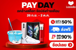 PAYDAY ลดล้างสต็อก ช้อปคุ้มส่งท้ายเดือน 1. ลดล้างสต็อกกว่า 50% 2. Flash Sale ลดสูงสุด 90% 3. คูปองส่งฟรี EN: PAYDAY Clearance sale every month end 1. Clearance more than 50% 2. Flash Sale Up to 90% 3. Free Shipping Coupon