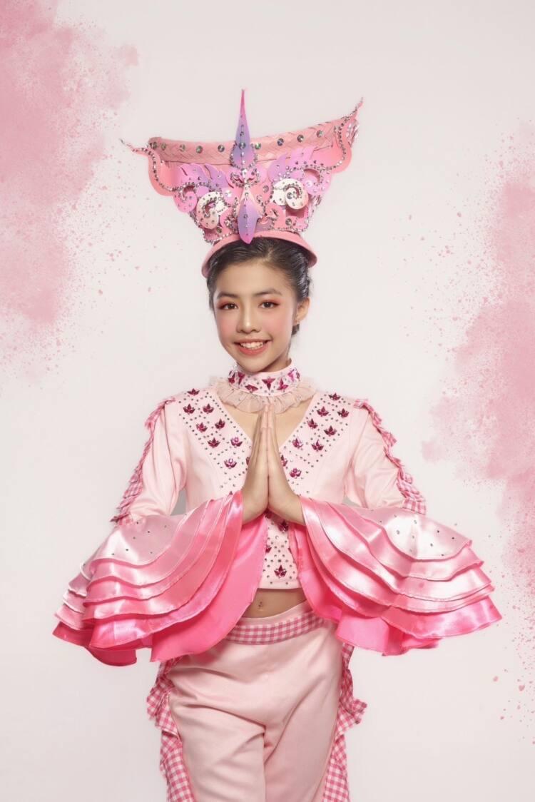 สำหรับตัวชุด น้องไข่มุกและคุณแม่ช่วยกันออกแบบใหม่ ซึ่งได้รับแรงบันดาลใจมาจากเทศกาลผีตาโขนตัดเย็บจากผ้าไหมสีชมพูหลากหลายเฉด ผสมผสานกับผ้าขาวม้าที่ทอจากเส้นใยฝ้ายที่มีลวดลายตารางเป็นเอกลักษณ์ เครื่องประดับศีรษะดัดแปลงจากหวดที่นึ่งข้าวเหนียวที่ทำจากตอกสานด้วยไม้ไผ่ แล้วนำมาตกแต่งลวดลายไทยแบบใหม่ให้เกิดความสวยงามแปลกตา จนคว้ารางวัล Outstanding Designer มาครอง