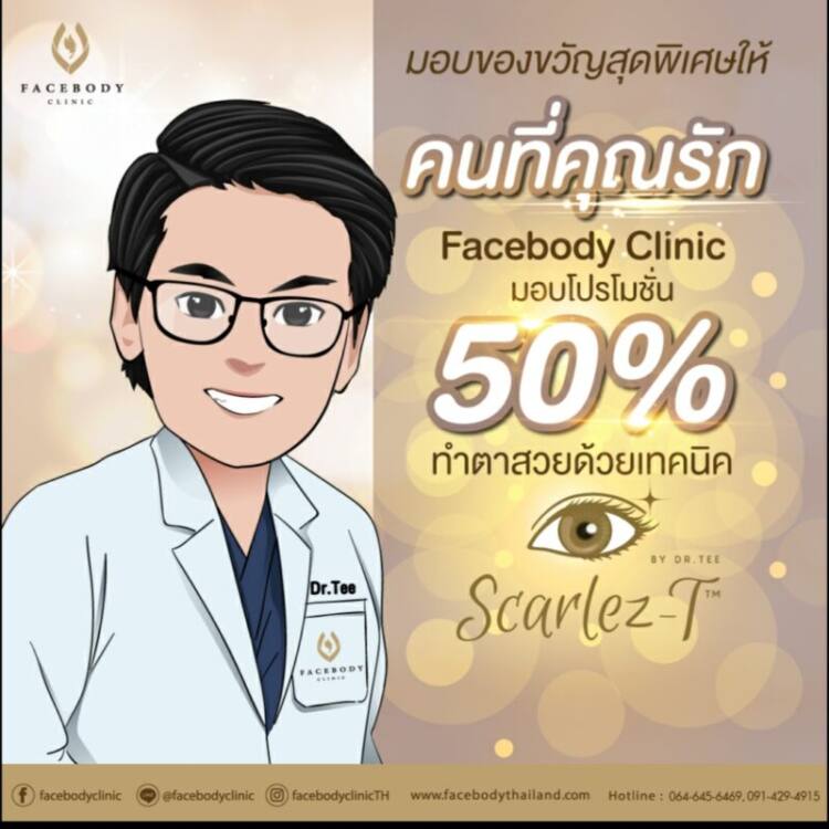 เฟสบอดี้คลินิก มอบโปรโมชั่นส่วนลด 50% เพราะอยากให้สาวๆ สวยอย่างมั่นใจในราคาที่จับต้องได้ เฉพาะในช่วงโควิดนี้ สำหรับผู้ที่จองออนไลน์ทำตาด้วยเทคนิค Scarlez-T เทคนิคเฉพาะ ศัลยกรรมตาสองชั้นออกมาให้ดูสวยธรรมชาติ เปลี่ยนลุคตามแบบที่สาวๆ ต้องการ จะเป็นสายเกาหลี สายหวานหรือสาย ฝ. ได้ตามต้องการ แวะเข้ามาปรึกษาพี่หมอ พร้อมมีการวางแผน ให้คำปรึกษา โดยคุณหมอผู้เชี่ยวชาญเฉพาะทางด้านจักษุ จึงวางใจในความสวยเป๊ะและปลอดภัย