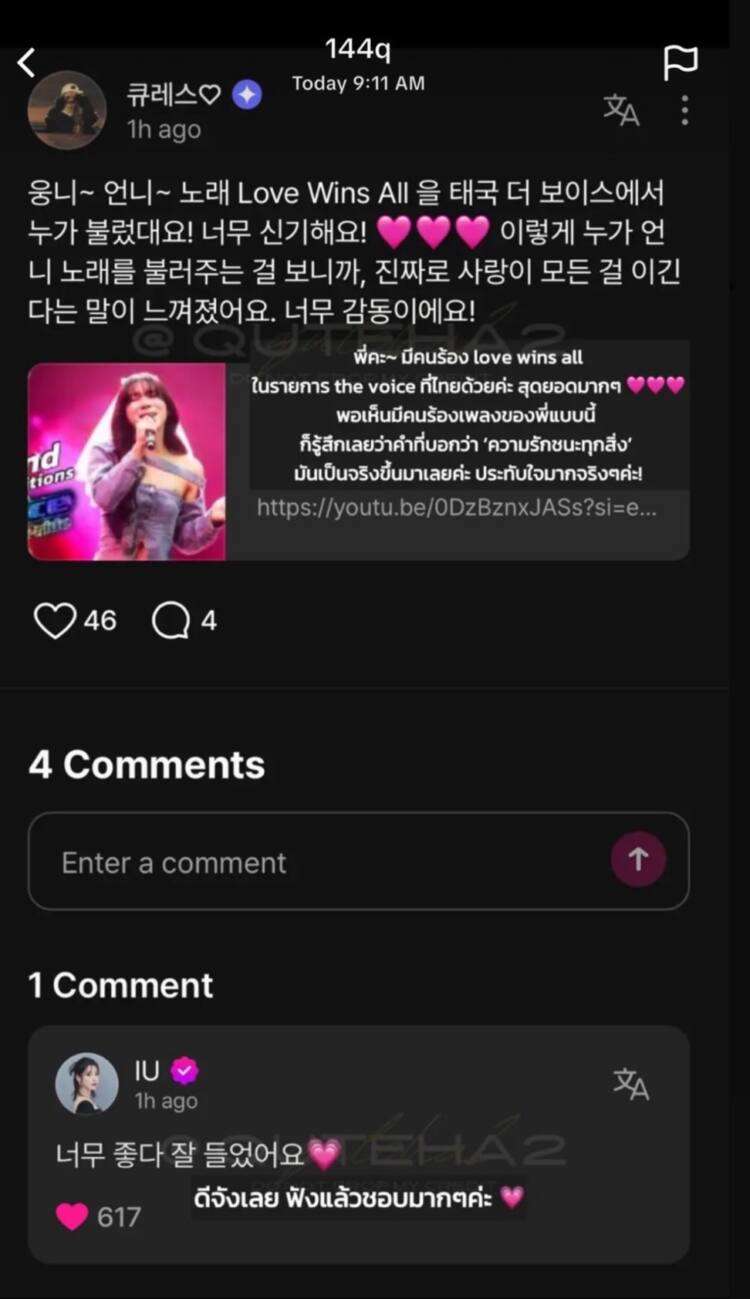 ปรบมือรัว ๆ ให้กับโมเมนต์สุดว้าว!! ที่กลายเป็นกระแสไวรัลในชั่วข้ามคืน! เมื่อ โค้กซี่ วิชญ์พล ปันตั๋น อินฟลูเอนเซอร์สาวหน้าหวาน หนึ่งในผู้เข้าแข่งขันรายการ The Voice PRIDE 2025 ขึ้นเวทีในรอบ Blind Audition ด้วยอินเนอร์มาเต็ม พร้อมโชว์พลังเสียงในเพลง “Love wins all” ผลงานสุดละมุนจากศิลปินเกาหลีชื่อดัง IU (ไอยู) ทันทีที่คลิปโชว์ของ โค้กซี่ ถูกปล่อยลงโซเชียล ก็เรียกเสียงฮือฮาไปทั่ว! ด้วยน้ำเสียงไพเราะ และการตีความที่สื่อถึงพลังของความรัก และความเท่าเทียมอย่างลึกซึ้ง โชว์นี้จึงเข้าไปนั่งในใจคนดูทั้งไทยและต่างประเทศอย่างรวดเร็ว และไฮไลต์ที่ทำเอาใจฟูไม่ไหว!! เมื่อแฟน ๆ TAG ไปถึง IU และ IU เข้ามาตอบกลับแบบเป็นกันเองสุด ๆ ด้วยข้อความสั้น ๆ แต่โดนใจว่า “ดีจังเลย ฟังแล้วชอบมาก ๆ” ซึ่งจุดชนวนให้เกิดกระแส และเกิดการรีแชร์ไปแบบรัว ๆ จนคลิปของ โค้กซี่ พุ่งทะยานทะลุ 1 ล้านวิว ภายในเวลาอันรวดเร็ว และยังคงถูกพูดถึงในโซเชียลอย่างต่อเนื่อง