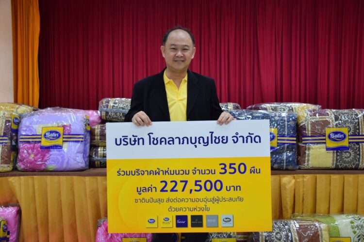 วันที่ 3 พฤศจิกายน 2568 บริษัท โชคลาภบุญไชย จํากัด ผู้ผลิตและจัดจําหน่ายที่นอนและชุดเครื่องนอนแบรนด์ Satin (ซาติน) หนึ่งในผูู้นําผลิตภัณฑ์เครื่องนอนคุณภาพของไทย ส่งมอบผ้าห่มนวมจํานวน 350 ผืน มูลค่ารวม 227,500 บาท ให้แก่กรมป้องกันและบรรเทาสาธารณภัย