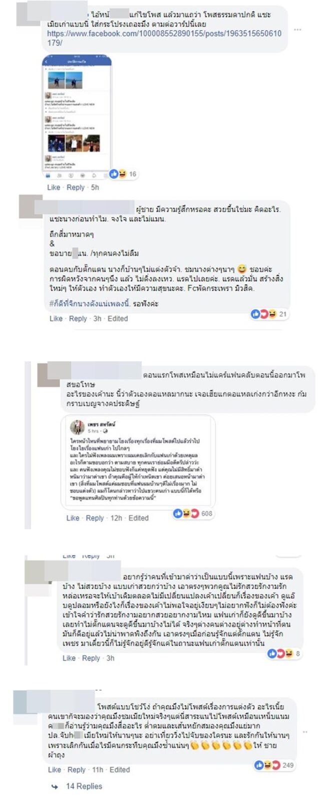และที่สำคัญคือ แต่ละคอมเมนต์ในโพสต์ของตั๊กแตน ก็มีแต่เดือด ๆ ทั้งนั้น ทั้งมีคนบอกว่าผู้ชายแบบนี้อย่าได้ไปแคร์ แต่บางคนก็แรงถึงขั้นเรียกเพชรด้วยถ้อยคำหยาบคายว่าหน้าอวัยวะ….กันเลยทีเดียว