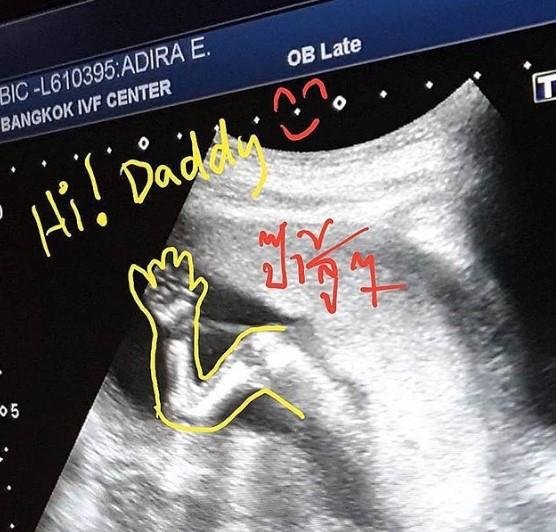 ส่วนอีกภาพนั้น หนุ่มแทคได้โพสต์ลงอินสตาแกรมของตัวเอง โดยเป็นภาพอัลตราซาวด์ของลูก ที่เจ้าตัวได้วาดลวดลายตกแต่งลงไปด้วย พร้อมกับข้อความบรรยายภาพว่า