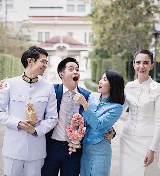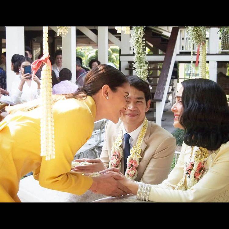 และแคปชั่นของพี่แอน ที่นอกจากจะแสดงความยินดีด้วยอย่างที่สุดแล้ว ก็ยังมีภาพที่กำลังรดน้ำสังข์ให้กับ ซาร่า-เอ็ม ภาพดูซึ้งแต่อ่านแคปชั่นที่มาสายฮาอีกแล้วว่า “ถ้าพี่มีวาสนาได้มีวันนี้เหมือนน้อง…ช่วยมาเป็นหน้าม้าในงานให้ด้วยนะคะ ยินดีด้วยอีกครั้งค่ะ ซาร่า&เอ็ม”