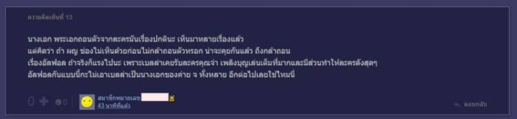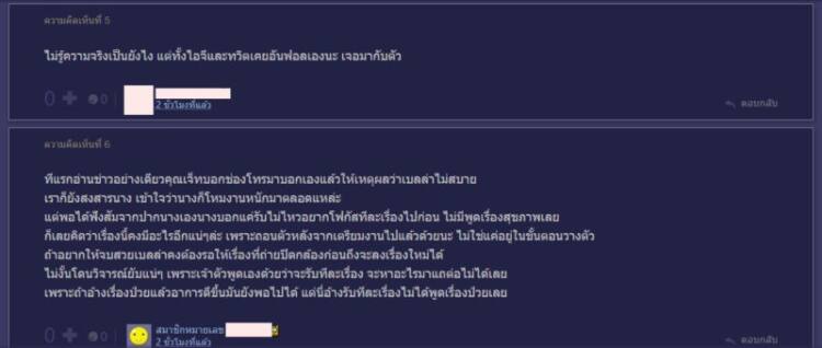 นอกจากนี้ ยังมีการตั้งกระทู้เกี่ยวกับเรื่องดังกล่าวลงในพันทิป ซึ่งชาวเน็ตหลายคนมองว่า คุณจ๋า อาจจะไม่พอใจสาวเบลล่าหรือไม่ ? ที่ถอนตัวจากละครน้องชาย ทั้งที่เพิ่งมีการประกาศตามหาตัวนักแสดงมาเป็นคู่ฝาแฝด มีการเตรียมงานทุกอย่างไว้หมดแล้ว อีกทั้งละครกำลังจะเปิดกล้องในเดือนกุมภาพันธ์นี้แล้วด้วย ซึ่งการที่งานน้องชายโดนเทกะทันหันก็อาจเป็นเหตุผลทำให้เคืองได้