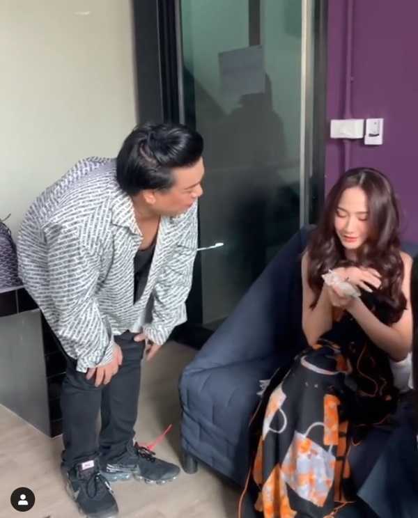 นอกจากนี้สาวอั้ม ยังได้เผยถึงเรื่องไถเงินพี่เอว่า “เจอหน้าทีต้องไถค่ะ มันเหมือนเป็นหน้าที่ของนักแสดงกับผู้จัดการ ใครจะบอกว่าผู้จัดการรีบไถเราไม่ใช่นะคะ ผิดนะคะ ใช้กับพวกเราไม่ได้ อั้มทั้งรีดไถเขา ทั้งกระเป๋า ทั้งเงิน ทั้งทอง ถ้าเจอเหมือนเป็นโรคหนึ่งที่ต้องจัดการค่ะ เดี๋ยวนี้เขาเริ่มซ่อนเงินแล้วไม่พกใส่กระเป๋า เพราะเรารู้ใช่ไหมคะ แล้วเขาก็เอาไปซ่อนกระเป๋ากางเกงด้านหลังบ้าง ฝากคนดูแลไว้บ้าง อั้มก็จะไปดึงกระเป๋ามา ซ่อนตรงไหนอั้มรู้หมด (กลิ่นเงินมันโชย) มันหอมมาก (หัวเราะ) คือแกล้งเขาตลก ได้ทีละหมื่นสองหมื่นอั้มก็มีความสุขแล้วค่ะ ไม่ได้ก็บอกให้โอน ถ้าไม่มีจริง ๆ ก็ต้องให้ซื้อกระเป๋า ก็ต้องมีวิธีล่อหลอก”