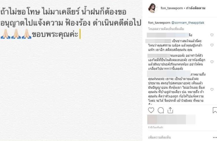 น้ำฝน แท็กอินสตาแกรมมาว่าถ้าเราไม่ขอโทษ จะฟ้องร้อง?