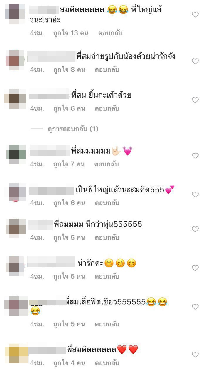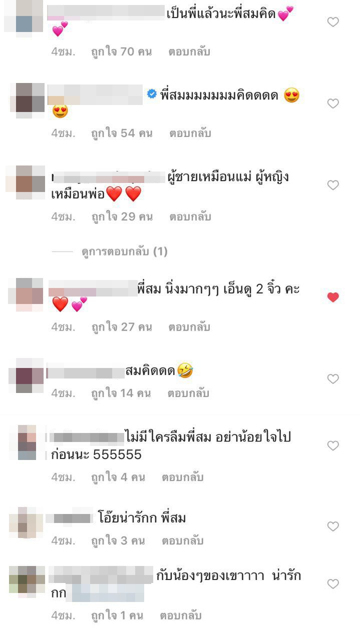 อย่างไรก็ตาม แฟนคลับจำนวนมากคอมเมนต์บอกว่าเป็นภาพครอบครัวที่น่ารักมาก ๆ รวมถึงแซวพี่สมคิดที่จะได้เป็นพี่ชายคนโตของน้อง ๆ แล้ว