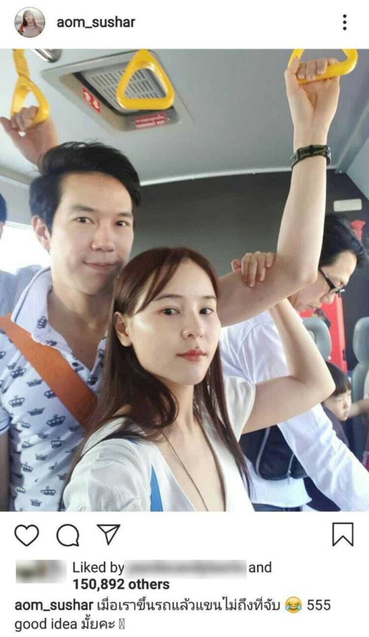 โดยเมื่อวันที่ 12 เมษายน 2562 สาวออมได้แชร์โมเมนต์น่ารักขณะอยู่บนรถบัสของสนามบิน ด้วยความที่เจ้าตัวเป็นสาวตัวเล็ก จึงเอื้อมมือจับห่วงไม่ถึง จะยืนเฉย ๆ ก็ไม่ได้ เนื่องจากอาจจะทรงตัวไม่อยู่ แต่งานนี้มีหนุ่มแอมป์มาด้วย ทุกอย่างจึงง่ายขึ้นมาก ฝ่ายหญิงจึงเอื้อมมือจับแขนหวานใจแทนราวของรถบัส เหมือนเป็นราวพกพาส่วนตัวกันเลยทีเดียว