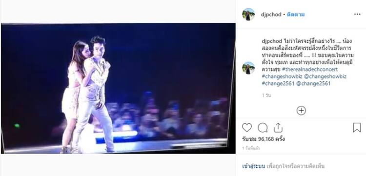 โดย พี่ฉอด ได้เขียนข้อความลงบนอินสตาแกรม ระบุว่า “ไม่ว่าใครจะรู้สึกอย่างไร …. น้องสองคนคือสิ่งมหัศจรรย์สิ่งหนึ่งในชีวิต การทำคอนเสิร์ตของพี่ ….. !!! ขอบคุณในความตั้งใจ ทุ่มเท และทำทุกอย่างเพื่อให้คนดูมีความสุข”