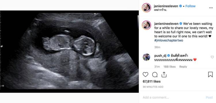 ทั้งนี้ เจนี่ ได้เผยผ่านไอจีว่า “เราทั้งคู่รอกันมาแล้วสักพักเพื่อที่จะบอกข่าวดีให้ทุกคนรู้ ตอนนี้หัวใจของฉันมันตื้นตันไปหมด เรารอไม่ไหวแล้วที่จะต้อนรับลูกตัวน้อย ๆ ของเราสู่โลกใบนี้”