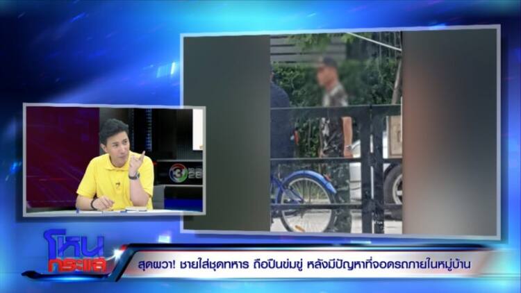 เพื่อนบ้านเปิดศึกแย่งที่จอดรถ! สาวผวาชายแต่งตัวคล้ายทหารชักปืนขู่! ร้องสื่อหวั่นไม่ปลอดภัย