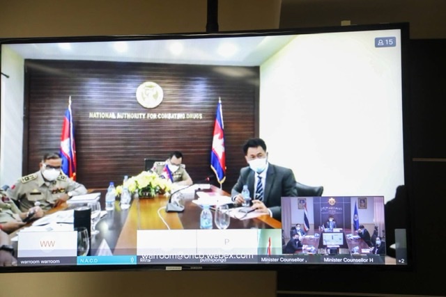 พลตำรวจเอก เมียะส์ วิริศ เลขาธิการคณะกรรมการต่อสู้ยาเสพติดแห่งชาติกัมพูชา ในการประชุมครั้งนี้ เจ้าหน้าที่สืบสวนพิเศษ ของสำนักงานปราบปรามยาเสพติดสหรัฐอเมริกา ( Drug Enforcement Administration: DEA)