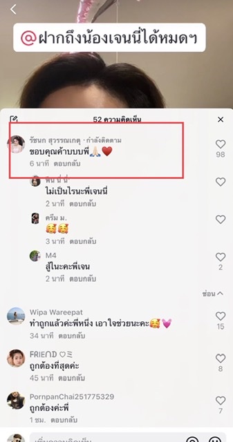 ทางด้านนักร้องดัง เจนนี่ ได้หมดถ้าสดชื่น เข้ามาคอมเมนต์ใต้โพสต์ ของ หนึ่ง บางปู โดยใช้ชื่อ รัชนก สุวรรณเกตุ ว่า”ขอบคุณค้าบบพี่🙏❤️