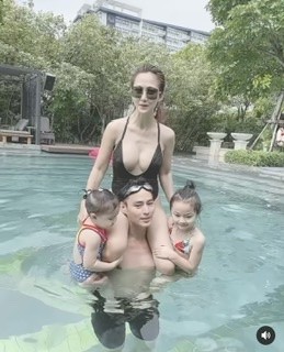 เห็นมาแต่ไกลไม่ต้องซูมเลยจ้า “ไฮโซน้ำหวาน” นางนี้เด็ดจริงล่าสุดโพสต์คลิปในไอจี เล่นน้ำกับครอบครัว โดยนางนั้นขี่คอสามี “นาวินต้าร์” ส่วนลูกสาวทั้ง 2 คน “น้องลูก้า-น้องมาโก้” ก็อยู่ในอ้อมกอดของพ่อเช่นกัน