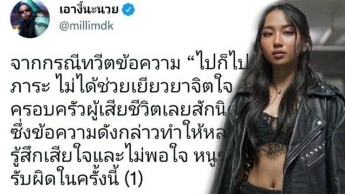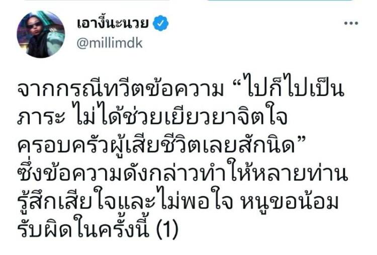 จากกรณีทวีตข้อความ “ไปก็ไปเป็นภาระ ไม่ได้ช่วยเยียวยาจิตใจครอบครัวผู้เสียชีวิตเลยสักนิด”