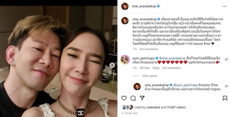 ด้าน “อั้ม” ก็เข้ามาเมนต์ว่า “ชั้นก็โคตรโชคดีที่มีเธอเป็นเพื่อน รักเธอนะชาย❤️❤️❤️❤️❤️❤️❤️ อยู่กันไปจนแก่เลยนะ💕”