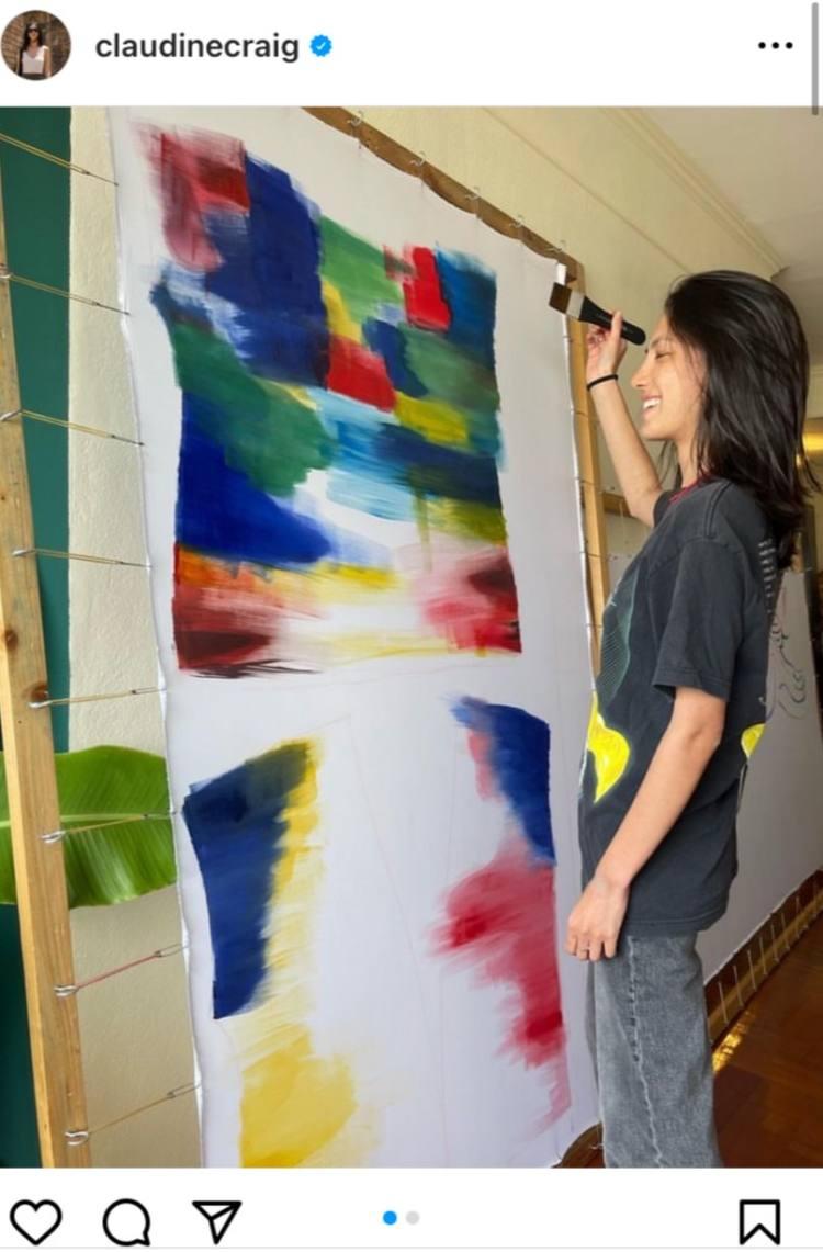 ล่าสุด คลอดีน ก็ได้ออกมาเคลื่อนไหวครั้งแรกหลังถูกจับตาความสัมพันธ์กับซุปตาร์รุ่นพี่ โดยเจ้าตัวได้โพสต์ภาพในลุคสุดชิล แฮปปี้เอ็นจอยกับงานศิลปะ พร้อมระบุแคปชั่นว่า “Paintin Fabricsss”