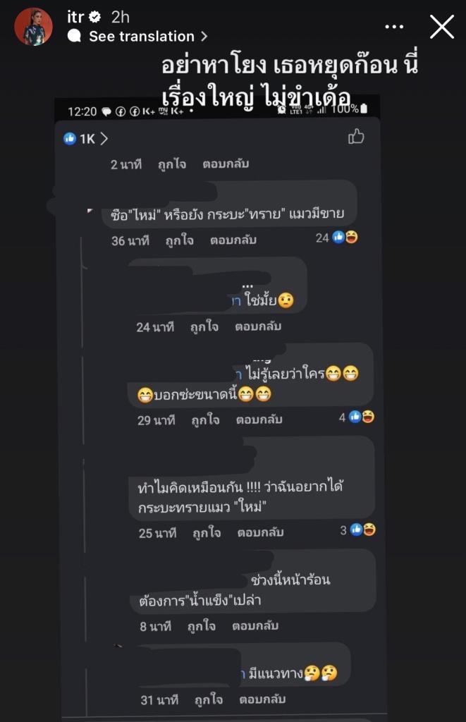 ไม่รอช้า ทรายรีบออกมาเคลียร์ ยันอย่าหาโยง เรื่องนี้ไม่ขำ “ผิดคนแล้วววววว คอมเมนต์ไม่ต้องใบ้ชื่ออ้อมไปอ้อมมาจ้า ไม่ใช่เราาาาาาา” และอีกหนึ่งโพสต์ที่บอกว่า “โอ๊ยตาย อยู่ๆ มีคนมาใบ้ว่าเป็นชื่อเรา ไม่ใช่ค่าาาา ชีวิตนี้สั่งแต่ทรายแมวกับเครื่องสำอางงงง”