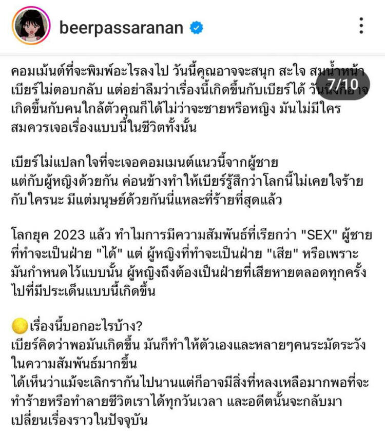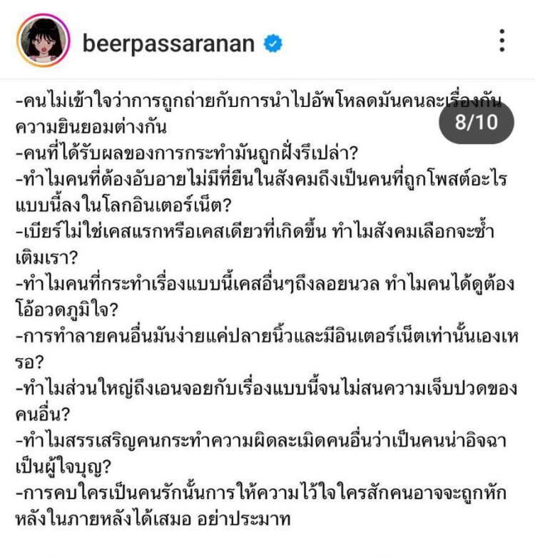 คอมเมนต์ที่จะพิมพ์อะไรลงไป วันนี้คุณอาจจะสนุก สะใจ สมน้ำหน้า เบียร์ไม่ตอบกลับ แต่อย่าลืมว่าเรื่องนี้เกิดขึ้นกับเบียร์ได้ วันนึงก็อาจเกิดขึ้นกับคนใกล้ตัวคุณก็ได้ไม่ว่าจะชายหรือหญิง มันไม่มีใครสมควรเจอเรื่องแบบนี้ในชีวิตทั้งนั้น