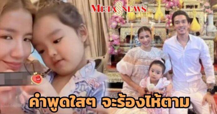 พร้อมเผยอีกว่า ลูกสาวถามหาพ่อทุกวัน และถามลูกสาวว่าคิดถึงพ่อไหม น้องเวทมนต์ก็เผยว่า “คิดถึงค่ะ แม่คิดถึงปะป๊าไหมคะ” ทำเอาสาวเตย กอดลูกแน่น ตอบว่า “คิดถึงสิคะ คิดถึงมากเลย เดี๋ยวปะป๊ากลับมาค่ะ ปะป๊าไปทำงานที่ต่างประเทศนะลูกนะ ปะป๊าคิดถึงหนูมาก เดี๋ยวปะป๊ากลับมานะคะ รอหน่อยปีหน้า” ทำเอาแฟนคลับที่เห็นคลิปดังกล่าวคอมเมนต์ว่าจะร้องไห้ตามเลยทีเดียว