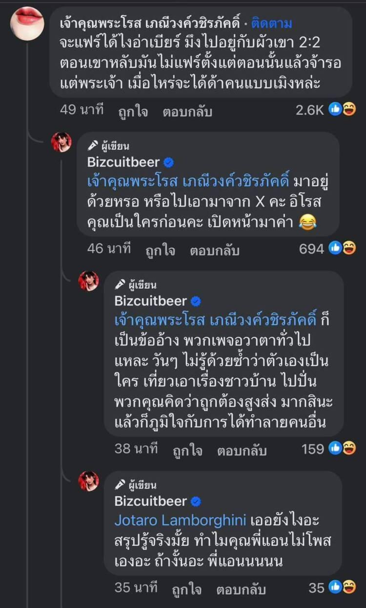 อย่างไรก็ตาม ยังฟาดเพจดังที่แฉเรื่องนี้ ซัดแรงแค่อวตาร แน่จริงให้เปิดหน้ามาคุย ขณะที่ชาวเน็ตก็ยังไม่เคลียร์กับพฤติกรรมเบียร์ โดยมองว่าถ้าไม่จริงก็ให้ชี้แจงมาเลย ไม่เห็นต้องมาอัดคลิปโทรศัพท์หาฝ่ายหญิง งานนี้ทัวร์ก็ยังลงฝ่ายเบียร์ฉ่ำ