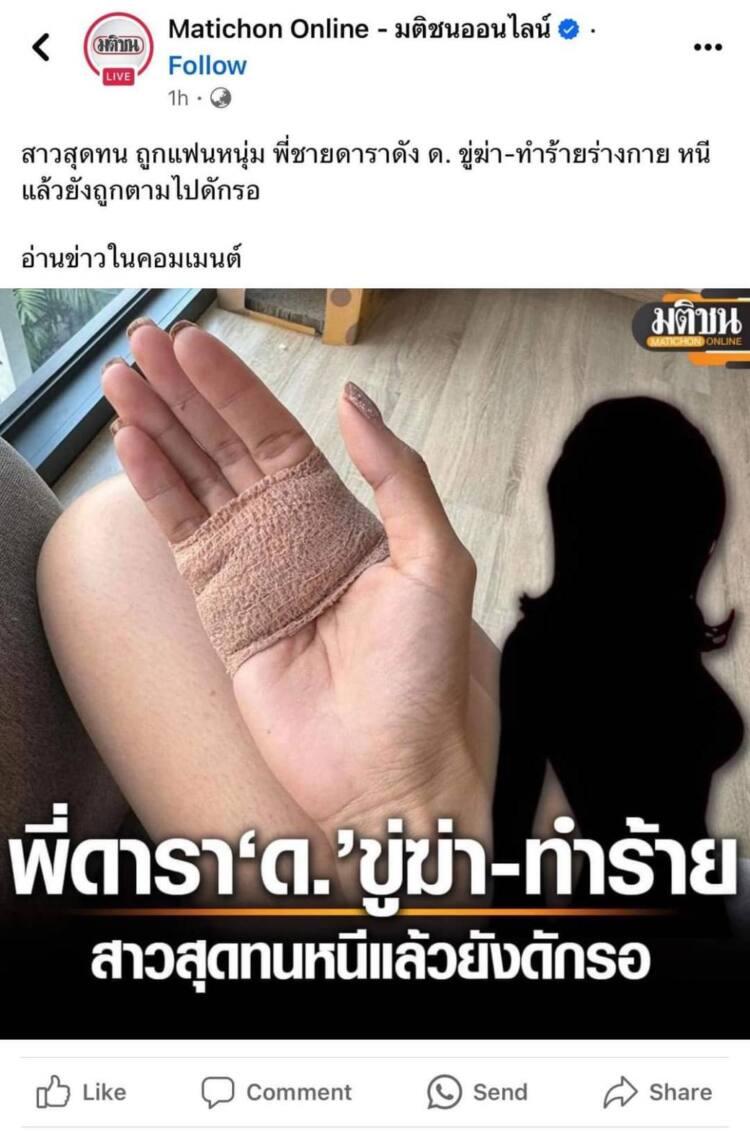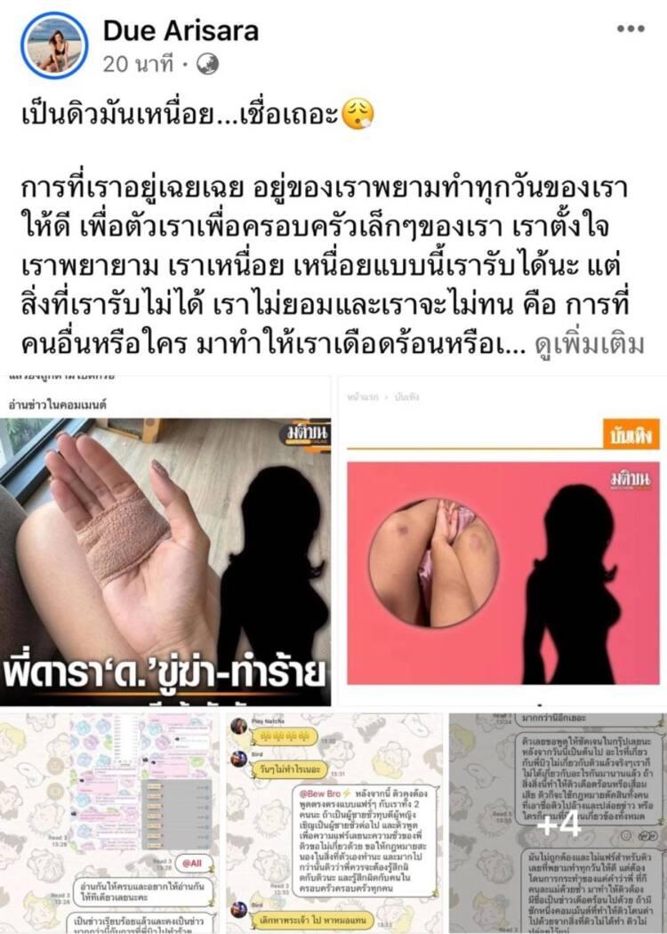 ตัดไฟแต่ต้นลมทันที หลังมีสาวรายหนึ่งออกมาแฉถูกแฟนทำร้ายร่างกาย โดยหนุ่มรายดังกล่าวเป็นพี่ชาย ดารา ด. โดย ดิว อริสรา ทองบริสุทธิ์ ออกมาสกัดข่าวด้วยการยอมรับว่า ดารา ด. คือตนเอง แต่ยืนยันว่าเรื่องดังกล่าวไม่ได้เกี่ยวกับตนเอง เผยให้เห็นแชตที่ต่อว่าพี่ชายต่างแม่ ทำชั่วก็ไม่เกี่ยวกับตนเอง ทุกวันนี้พยายามอย่างหนักที่จะมีชีวิตที่ดี พร้อมประกาศขอตัดขาดอีกฝ่ายเรียบร้อยแล้ว