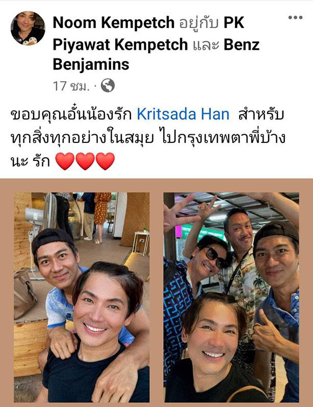 โดย “หนุ่ม ชลทิศ เข็มเพชร” พี่ชายพีเค ได้แชร์ข่าวดังกล่าว พร้อมเผยแล้วว่า พีเค ไปกับตนเอง “ไปกะ พี่หนุ่ม จ๊ะ ไม่ใช่โจลี โจแตรด ที่ไหน # อุตส่าห์ควักกระเป๋าซื้อตั๋วพาน้องไปพักผ่อน” พร้อมตอบคำถาม “ม้า อรนภา กฤษฎี” ที่เข้ามาสอบถามทำนองว่า งงกับข่าว เพราะน้องอยู่กับตัวเองตลอด