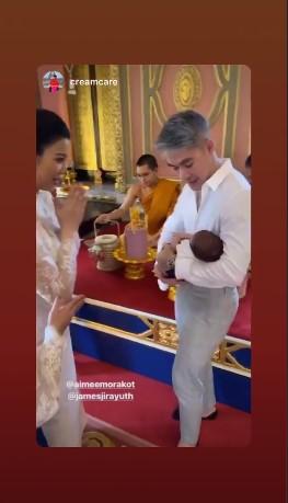 ล่าสุดนี้คุณแม่เอมมี่ และคุณพ่อเจมส์ ได้พาน้องสายน้ำไปทำพิธีโกนผมไฟ พร้อมกับทำบุญอายุครบ 1 เดือน ที่วัดราชบพิธ โดยมีเพื่อนสนิทอย่าง ครีม เปรมสินี และคนในครอบครัวอยู่ร่วมพิธี