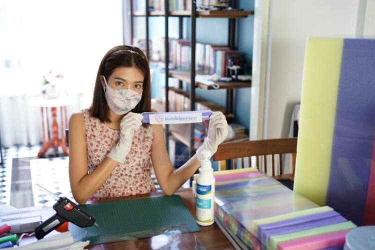 ไอซ์ เผยว่า “ตอนแรกเห็นน้องจันทร์จิทำเลยถามเพราะเราก็อยากทำเหมือนกัน และอุปกรณ์ค่อนข้างหายากเพราะบางที่ก็โก่งราคาด้วย พอเราได้เบอร์ติดต่อโรงงาน เราก็เลยสั่งมาทำดู พอเราทำแล้วเราก็คุยว่าเราจะส่งไปที่ไหนดี น้องบอกว่าทางภาคใต้ค่อนข้างขาดแคลนมาก ๆ เราก็เลยจะส่งไปที่ภาคใต้กันแล้วอีกอย่างนึง การทำหน้ากากครั้งนี้ก็ได้ทำกับโครงการปันหัวใสใส่หน้ากาก เราก็เลยรู้สึกว่าเป็นโครงการที่ดีอยากร่วม ล็อตแรกเราทำได้ประมาณร้อยกว่าชิ้นเสร็จในวันเดียวขั้นตอนทำไม่ได้ยากมาก อาจจะยากตรงที่การตัดแผ่นฟองน้ำได้ขนาดตามต้องการเอายางยืดม้วนมาแล้วมาตัด เราก็ช่วยกันทำกับคุณพ่อคุณแม่ พอล็อตแรกเสร็จเราก็บอกกับเพื่อนที่เราสนิท ๆ ว่าเราทำตรงนี้อยู่นะเพื่อนเลยขอสมทบทุนมา แล้วก็มีพี่จั๊กจั่น ด้วยค่ะ ก็สมทบทุนมาพี่จั่นบอกว่าอยากทำบุญด้วย ช่วยมาได้เยอะเหมือนกันเราเองก็ลงแรงทำงานได้ชิ้นงานออกมารู้สึกสบายใจ ที่ได้ช่วย เหมือนเป็นคุณค่าทางจิตใจด้วยเป้าหมายในการทำครั้งนี้ ทั้งหมด 1300 ชิ้นค่ะ คนที่มองว่าดาราสร้างภาพออกมาบริจาคสิ่งต่าง ๆ เรารู้สึกยังไง การที่ดาราออกมาทำอะไรแบบนี้มันอาจจะเห็นได้ชัด เราอยู่ที่แจ้ง ไม่ว่าเราจะทำอะไรทุกคนรู้เห็นหมดแต่กลับกลายเป็นว่าเราสร้างภาพ ซึ่งจริง ๆแล้วไม่ใช่ มันก็แล้วแต่คนมอง เราเองก็ไม่สามารถบังคับความคิดใครได้ เราเชื่อว่าทุกคนที่ทำไม่ว่าจะเป็นดาราหรือใครก็ตาม ทุกคนมีเป้าหมายเดียวกันคืออยากช่วยสังคม คุณหมอพยาบาลที่เค้ากำลังลำบากอยู่ และเค้าเหล่านั้น ก็ไม่ได้ลำบากเพื่อใครก็ลำบากเพื่อพวกเราเอง สิ่งนี้มาจากใจเราจริง ๆ บางคนอาจจะช่วยได้เยอะได้น้อยต่างกัน แต่ท้ายที่สุดทุกคนมีเป้าหมายและหัวใจที่อยากจะช่วยเหมือนกัน เพียงเท่านี้ก็สุขใจแล้วค่ะ
