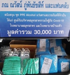 โดยบริจาคชุด PPE 100ชุด แว่นตา 100 ชิ้น ถุงมือ 100 คู่ หมวก 1,000 ชิ้น แอลกอฮอล์ 80 ลิตร และสิ่งของจำเป็น ผ้าอนามัย 78 ห่อ มูลค่ารวม 30,000 บาท