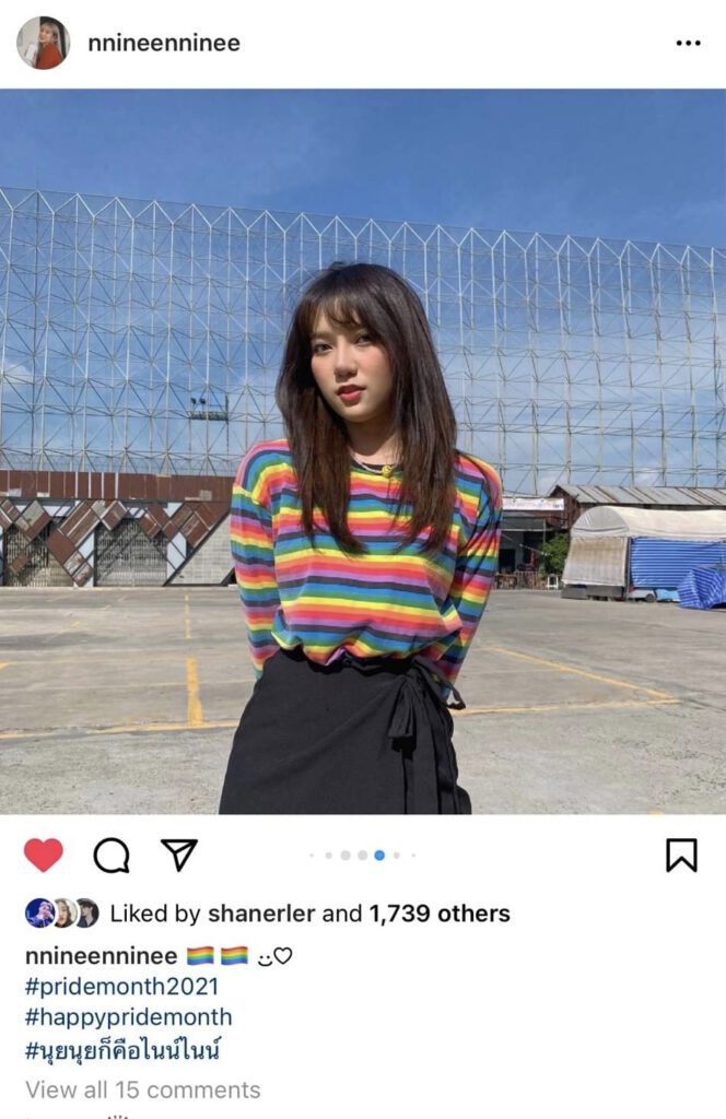 ไนน์ไนน์ ณัฏฐณิชา ศรีสวัสดิพโลดม “ต้องย้ำๆ กันไปหลายรอบว่า หญิงรักหญิง ชายรักชาย ไม่ใช่เรื่องผิดปกติ แต่บางคนยังมีอคติ ยังมีความเชื่อผิดๆ ได้รับข้อมูลมาแบบผิดๆ จะเพศไหนทุกคนก็มีหัวใจได้ค่ะ มีอิสระที่จะรัก และที่สำคัญเรื่องความเท่าเทียมกันทางเพศ เราต้องตระหนักรู้ และช่วยกันลงมือทำอย่างจริงจัง และต่อเนื่องด้วยค่ะ”