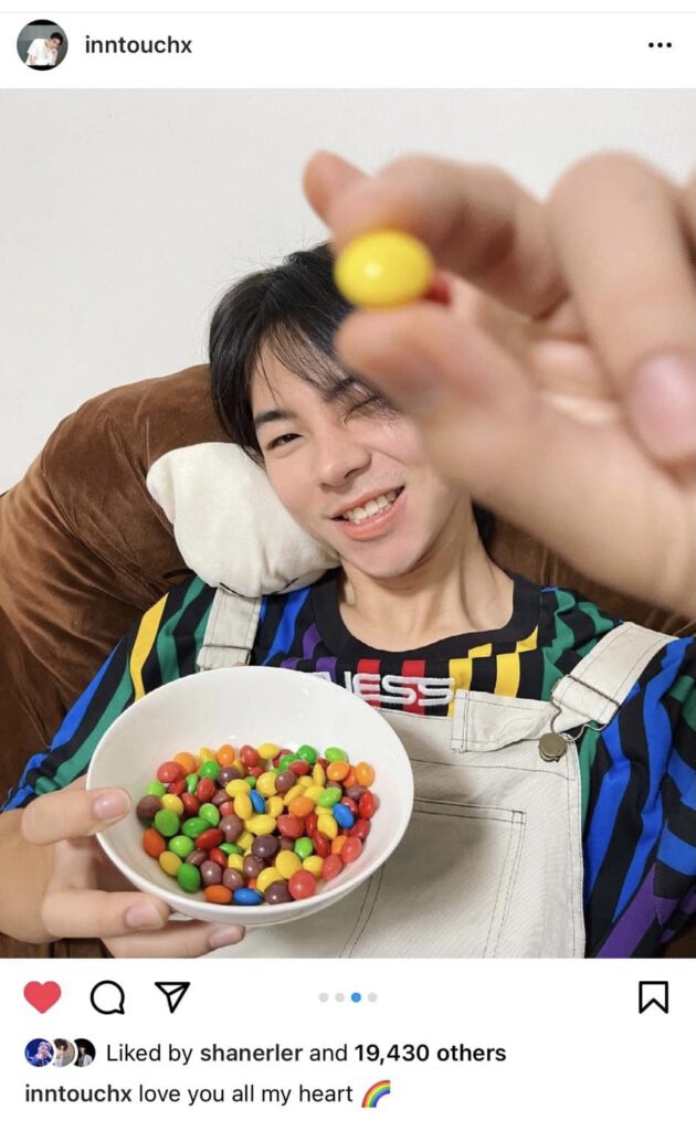 อินทัช ณภัทร เฉลิมพรภักดี “พี่ๆ กลุ่มหลากหลายทางเพศในวงการบันเทิง ก็มีเยอะอย่างที่เรารู้กันแล้ว มีความสามารถจริง ครีเอทสร้างสรรค์เก่ง ผมอยากจะชูประเด็นเรื่องจดทะเบียนสมรสกันได้ เพราะสิทธิเรื่องภาษี หรืออีกฝ่ายหนึ่งเสียชีวิตไป ก็จะได้รับมรดก คือให้มีสิทธิเท่าเทียมกันแบบคู่ชาย-หญิง แต่ทุกวันนี้เรายังเลือกปฏิบัติไม่ยอมรับ ในขณะที่อีกหลายประเทศทั่วโลก มีกฎหมายให้แต่งงานเพศเดียวกันได้แล้ว ผมยังมองไปถึงเรื่องการท่องเที่ยวด้วย ที่เป็นอีกรายได้หลักของไทย กลุ่ม LGBTQ จากทั่วโลกจะพุ่งเข้ามาเที่ยวไทยได้อย่างมีความสุข และสบายใจด้วยครับ