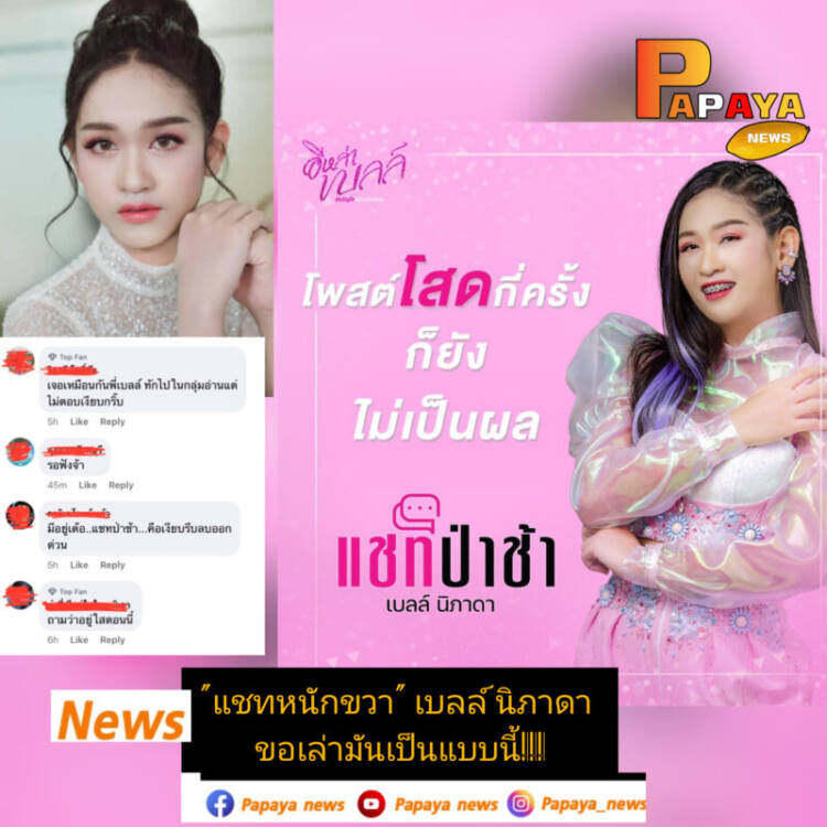 ปล่อยเพลงไหนมาก็ปังแตะ 100 ล้านวิว สำหรับ นักร้องลูกทุ่งสุดฮอต “เบลล์-นิภาดา ขันเงิน” ที่เตรียมส่งเพลงมาเขย่ายอดวิวในยูทูปอีกแล้วในเพลง “แชทป่าช้า” ซึ่งเป็นอาการของคนทักแชทไปแล้วเค้าไม่ตอบ โดยงานนี้นักร้องสาวแอบกดดัน และตื่นเต้นไม่เบา เพราะแค่ปล่อยทีเซอร์มากับลุคใหม่ที่ดูว๊าวสวยสดใสน่าติดตาม พร้อมก็ทำคอนเทนต์แชร์ประสบการณ์จริงจากการแชทหนักขวามาเล่าให้ฟังลงเพจ งานนี้แฟนคลับคอมเมนต์รอฟังกันเพียบเลยจ้า โดย เบลล์ เผยว่า