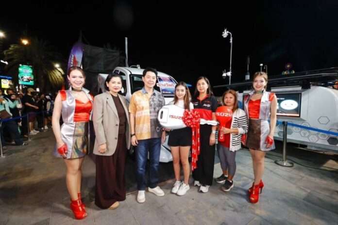 คุณปรเมศวร์ งามพิเชษฐ์ นายกเมืองพัทยา และ คุณธัญญา วชิรบรรจง ประธานเจ้าหน้าที่ฝ่ายรายการและผู้อำนวยสถานีโทรทัศน์ช่อง MONO29 บริษัท โมโนเน็กซ์ จำกัด (มหาชน) พร้อมด้วย คุณสรรวรส พุทธเจริญลาภ ผู้จัดการฝ่ายสื่อสารการตลาดรถเล็ก บริษัท ตรีเพชรอีซูซุเซลส์ จำกัด ผู้สนับสนุนหลัก มอบรางวัลใหญ่ รถปิกอัพ อีซูซุดีแมคซ์ รุ่น Spacecab 2.2 Ddi MAXFORCE มูลค่า 777,000 บาท ให้กับ นางสาวทิพนันท์ แซงแสวง จังหวัดบุรีรัมย์ ซึ่งเป็นผู้โชคดีที่เข้าร่วมงานในงาน “MONO29 PATTAYA COUNTDOWN 2025” (โมโน ทเวนตี้ไนน์ พัทยา เคาท์ดาวน์ 2025) ณ ริมชายหาดพัทยา จังหวัดชลบุรี เมื่อวันก่อน