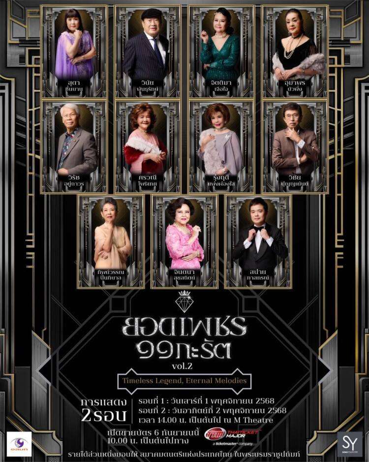 บริษัท อสมท จำกัด (มหาชน) ร่วมกับ “ก้อง ปิยะ เศวตพิกุล” ผู้จัดมือทอง ในนาม บริษัท โซนิกซ์ ยูธ 1999 จำกัดปลุกตำนานครั้งที่ 2 ของยุคทองเพลงลูกกรุงเมืองไทย กับบทเพลงลูกกรุงอันไพเราะ เปิดตำนานเพลงดังที่คิดถึง กับ คอนเสิร์ต “ยอดเพชร ๑๑ กะรัต Vol.2 : Timeless Legend, Eternal Melodies” รวมสุดยอด ๑๑ ศิลปินแห่งประวัติศาสตร์เพลงลูกกรุงที่ได้รับความนิยม มากกว่า 30 บทเพลง คัดสรรเพลงไพเราะ ระดับตำนานที่คุณคิดถึง อาทิ หยาดเพชร, เริงลีลาศ, สี่แผ่นดิน, จูบเย้ยจันทร์, โพระดก, รักข้ามขอบฟ้า, จำเลยรัก และอื่นๆ อีกมากมาย รวบรวมไว้ในคอนเสิร์ตครั้งนี้ มาร่วมจารึกท่วงทำนองแห่งความทรงจำ ร่วมร้อยเรียงเรื่องราวผ่านบทเพลงอันไพเราะที่ยังตราตรึง นำโดย 5 ศิลปินแห่งชาติ