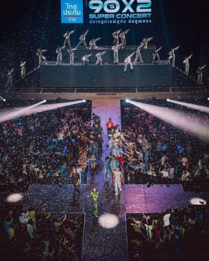 เต็มอิ่มคุ้มค่าทุกนาทีจริง ๆ สำหรับคอนเสิร์ตที่หลายคนรอคอย ไทยประกันชีวิต presents 90’s x2 SUPER CONCERT ปรากฏการณ์คู่กัน มันคูณสอง ที่จัดขึ้นเมื่อวันเสาร์ที่ 13 และวันอาทิตย์ที่ 14 กันยายน 2568 ณ อิมแพ็ค อารีน่า เมืองทองธานี โดยทีมผู้จัดมืออาชีพอย่าง IDEA FACT ภายใต้ GMM SHOW ที่สร้างสรรค์คอนเสิร์ตคุณภาพมาแล้วมากมาย ครั้งนี้ได้เนรมิตโปรดักชันสุดอลังการ ทั้งแสง สี เสียง เวที และจอ LED แบบจัดเต็มในทุกมุมมอง ให้แฟนเพลงได้ดื่มด่ำกับประสบการณ์คอนเสิร์ตที่สมบูรณ์แบบที่สุด ชวนทุกคนย้อนเวลากลับไปสู่วัยรุ่นยุค 90’s – 2000’s แบบอัดแน่นกว่า 7 ชั่วโมง รวมเพลงฮิตกว่า 100 เพลงมาให้แฟน ๆ ได้ร้องตาม