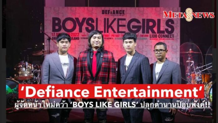 สำหรับศิลปินที่เลือกมาเป็นเบอร์แรกในการจัดคอนเสิร์ตในนาม Defiance Entertainment คือ วง Boys Like Girls (บอยส์ ไลค์ เกิร์ลส์) วงป๊อบพังค์ (Pop Punk) สัญชาติอเมริกัน ซึ่งเป็นหนึ่งในวงป๊อบพังค์ที่หลายคนคิดถึง และรอคอย แต่ยังไม่มีโอกาสได้สัมผัสกับความมันเต็มรูปแบบจากการแสดงสดในประเทศไทยแม้แต่ครั้งเดียว ครั้งนี้ถือเป็นโอกาสอันที่ทีคนไทยจะได้ร่วมจารึกประวัติศาสตร์กับวงป๊อบพังค์ในตำนานอย่าง Boys Like Girls กับการทัวร์ครั้งแรกในประเทศไทย ในงาน Budweiser Club Presents Boys Like Girls Live In Bangkok (บัดไวเซอร์ พรีเซ็นต์ บอยส์ ไลค์ เกิร์ลส์ ไลฟ์ อิน แบ็งค็อก) ในวันที่ 17 ตุลาคม 2565 ณ ลิโด้ คอนเน็ค ซึ่งได้รับกระแสตอบรับดี อย่างมากจนทำให้บัตร Early Birds หมดตั้งแต่วันแรกที่เปิดจำหน่ายเลยทีเดียว โดยงานนี้แฟนๆทุกคนจะได้มัน อย่างเต็มรูปแบบกับเพลงในอัลบั้ม Boys Like Girls ชื่อเดียวกับวง ซึ่งเป็นอัลบั้มแรกที่คนไทยคุ้นหูอย่างดี ตั้งแต่ เพลงแรกถึงเพลงสุดท้าย ถือว่าเป็นความพิเศษที่ทางวงเตรียมไว้ให้แฟนๆชาวไทยทุกคน นอกจากนี้ แฟนๆยังได้ อุ่นเครื่องความมันกับ opening show จาก วง Midnight Fusic วงดนตรีชื่อดังแนวอัลเทอร์เนทีฟ อินดี้ สัญชาติมาเลเซีย รวมถึงวงป๊อบพังค์สัญชาติไทย อย่าง วง Hut Boy อีกด้วย โดยได้มีการจัดงานแถลงข่าวอย่างเป็นทางการไปเป็นที่ เรียบร้อยแล้ว เมื่อวันจันทร์ที่ 3 ตุลาคม 2565 ณ ห้องอาหาร Vertigo TOO โรงแรม บันยันทรี สาทร