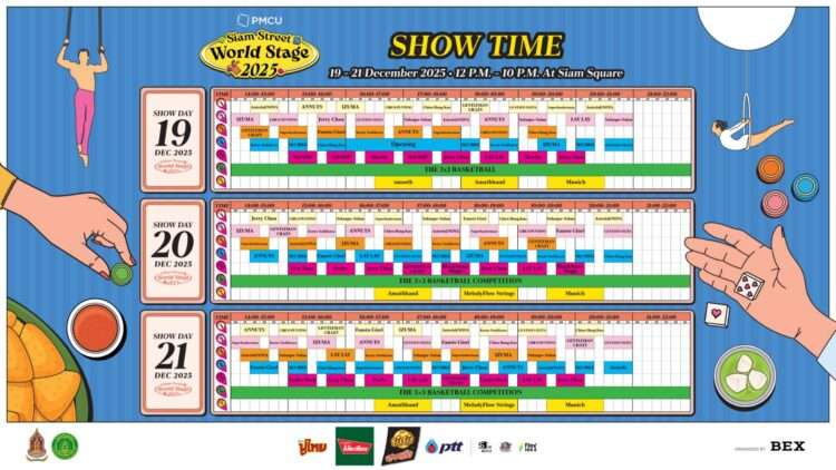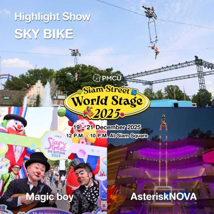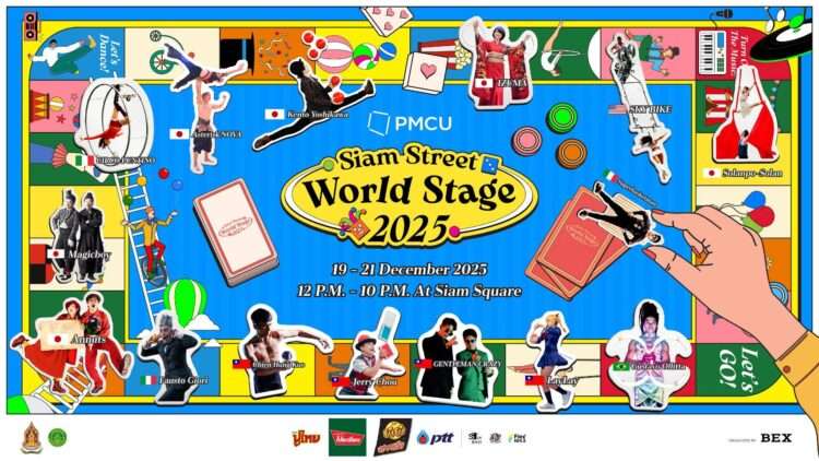เสิร์ฟความสุขต่อเนื่องมาถึงปีที่ 9 แล้ว สำหรับมหกรรมรวมสุดยอดสตรีทโชว์จากทั่วทุกมุมโลก “Siam Street” โดยในปีนี้ สำนักงานจัดการทรัพย์สินจุฬาลงกรณ์มหาวิทยาลัย (PMCU) ร่วมกับ กระทรวงวัฒนธรรม กรมส่งเสริมวัฒนธรรม และบริษัท กรุงเทพเอ็กซิบิชั่น จำกัด (BEX) พร้อมทั้งภาครัฐและเอกชน กลับมาเปิดกระดานความสนุกครั้งใหม่ให้เต็มไปทั้งสยามสแควร์ กับงาน “PMCU Presents Siam Street World Stage 2025” ในปีนี้จัดขึ้นในคอนเซ็ปต์ “Board Game of Global Street Performance” เล่นใหญ่ระดับโลกด้วยการแสดงสุดว้าวและหาดูยาก ไม่ว่าจะเป็น Juggling, Acrobatics, Magic, Mime, Clowning และ Puppetry จากศิลปินสตรีทโชว์นานาประเทศ พร้อมจุด Check in มุมถ่ายรูปสุดปัง และกิจกรรมและเกมสุดมันส์ ที่จะเต็มอิ่ม ถูกใจ ทั้งสายคอนเทนต์ สายแชะ สายแดนซ์ ที่สำคัญงานนี้เปิดให้เข้าชมฟรี ไม่มีค่าใช้จ่าย ตลอด 3 วันเต็ม ระหว่างวันที่ 19 – 21 ธันวาคม 2568 ตั้งแต่เวลา 12:00 – 22:00 น. เต็มพื้นที่สยามสแควร์