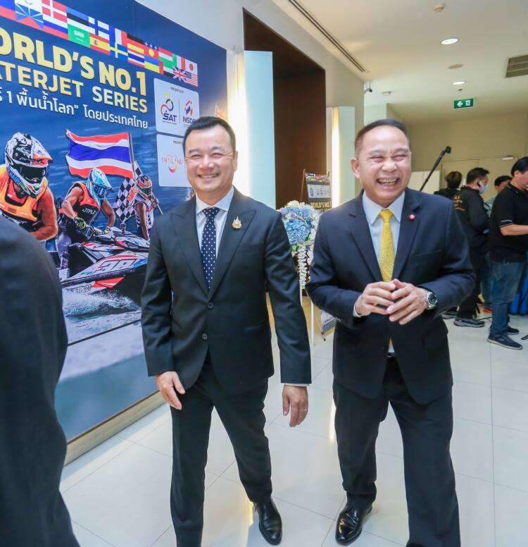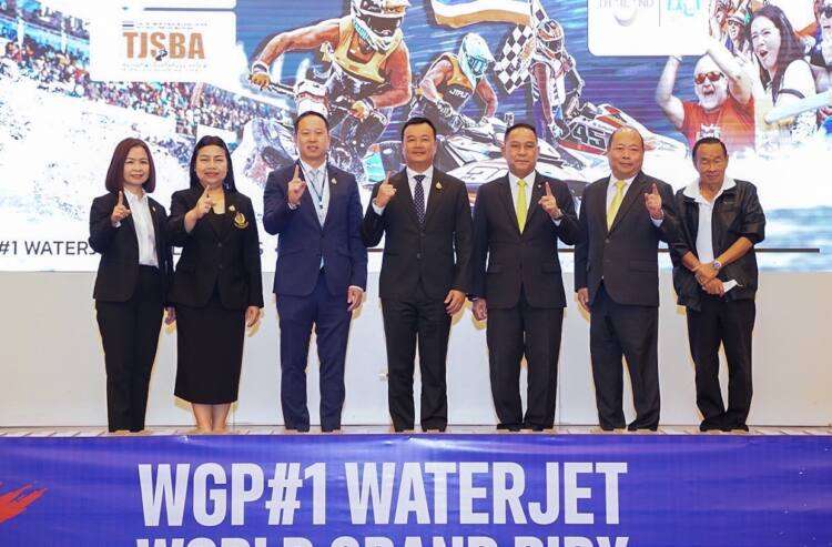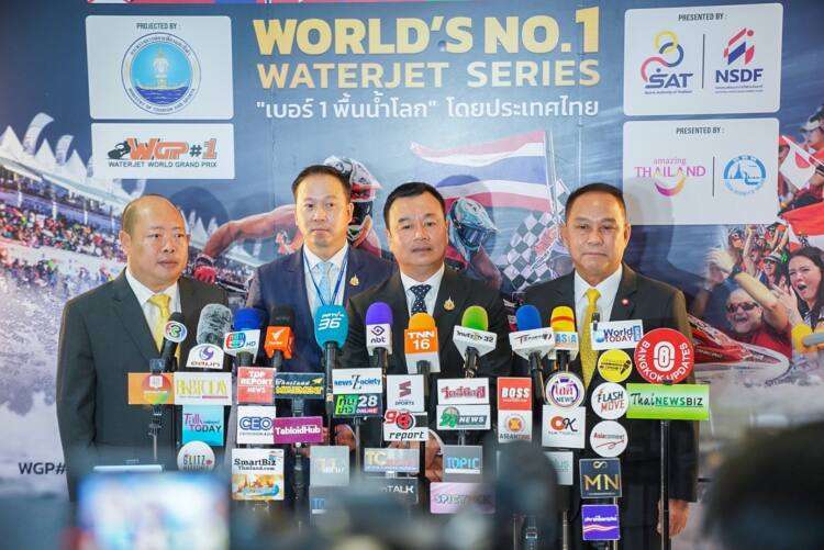 จากการแถลงข่าวร่วมกันของ “บิ๊กบอย” นายสรวงศ์ เทียนทอง รัฐมนตรีว่าการ กระทรวงการท่องเที่ยวและกีฬา พล.ต.อ.เดชณรงค์ สุทธิชาญบัญชา นายกสมาคมกีฬาเจ็ตสกีแห่งประเทศไทย ในพระอุปถัมภ์ของทูลกระหม่อมหญิงอุบลรัตนฯ และนายปริเขต สืบสหการ ผู้อำนวยการทัวร์นาเม้นท์ WGP#1 ณ อาคารเฉลิมพระเกียรติฯ ชั้น 25 การกีฬาแห่งประเทศไทย