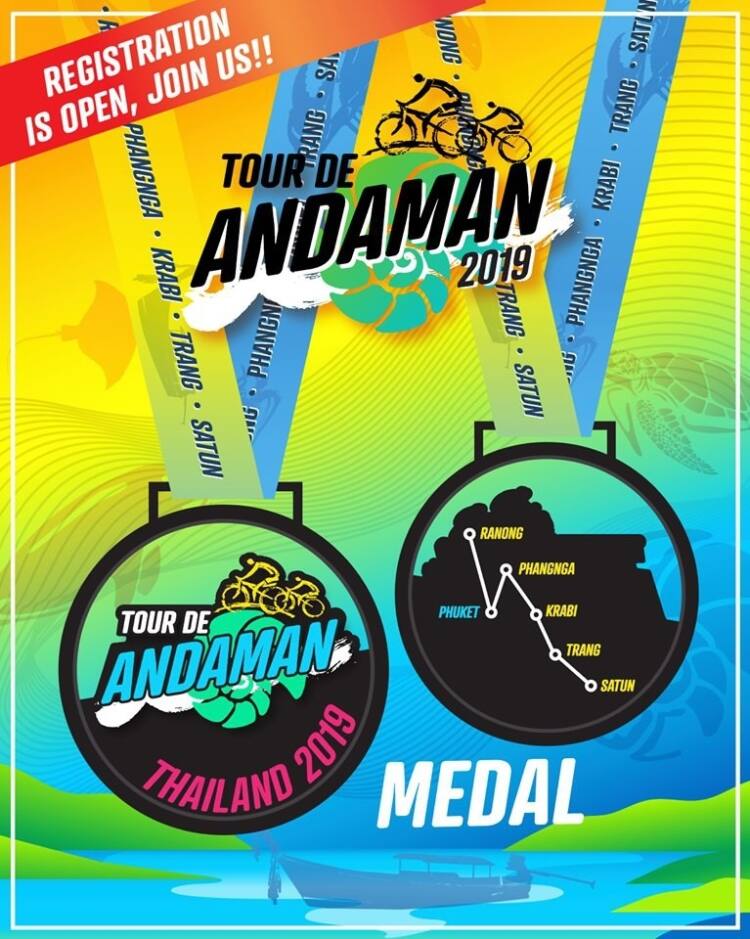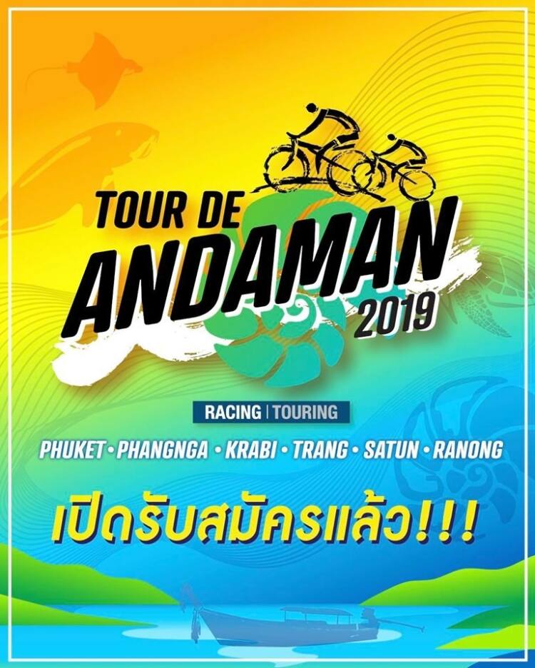 “การแข่งขัน จักรยานทางไกล Tour De Andaman 2019 (ทัวร์ เดอ อันดามัน) มีสโลแกน “ปั่นกินลม ชมวิถีชาวเล สัมผัสเสน่ห์อันดามัน” ทำให้ในประเภท Touring (ทัวร์ริ่ง) เป็นสิ่งที่นักท่องเที่ยวจะสามารถปั่นจักรยานท่องเที่ยว 12 จุดเช็คอินห้ามพลาด รวมทั้งอร่อยฟินของกินเด็ดๆ 6 จังหวัด ได้แก่ ภูเก็ต, พังงา, กระบี่ตรัง, สตูล, ระนอง ส่วน ประเภท Racing (เรซซิ่ง) ที่จะใช้เส้นทางผ่านทั้ง 6 จังหวัด ตลอดระยะเวลาในการแข่งขันรวม 4 สเตจ”